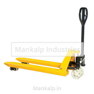 We offer our clients a vast assortment of Hydraulic Hand Pallet Truck that has high load bearing capacity and is provided with Polyurethane / UHMW-PE tandem rollers for quieter and smoother rolling over rough surfaces. It is also equipped with a one-piece "C" section forks for greater strength and a sully strengthened chassis along inside of forks.